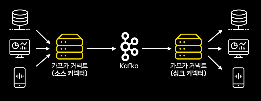 Kafka์ Prodcuer์ Consumer ์ญํ ์ Kafka Connect๊ฐ ์คํํ๊ฒ ๋๋ ๊ฒ์ด๋ค.