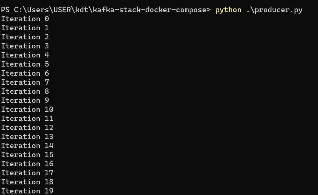 producer.send('topic_test', value=data) # ์ด๋ฆ์ด topic_test์ธ Topic์ ํด๋น ๋ฐ์ดํฐ ์ ์ก